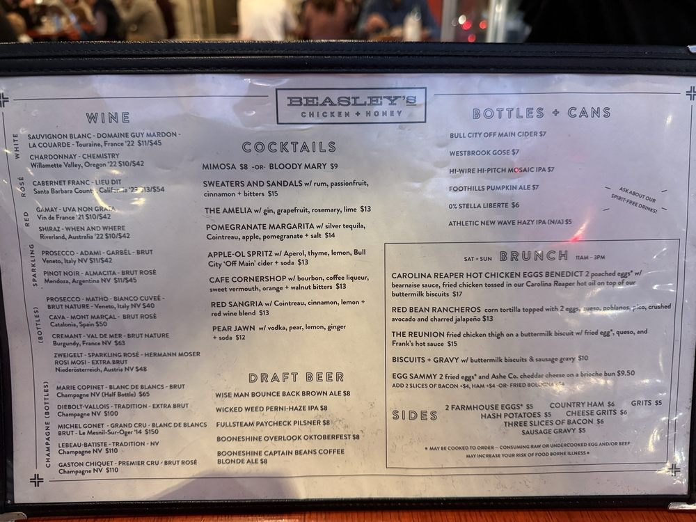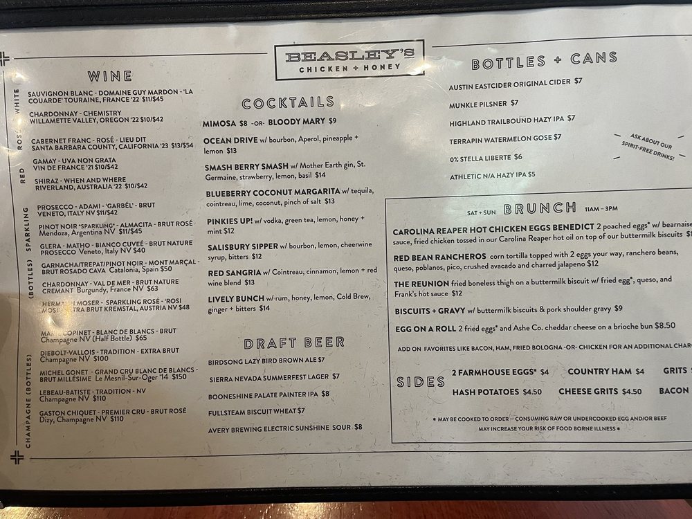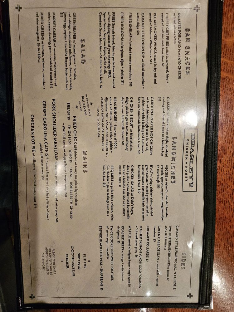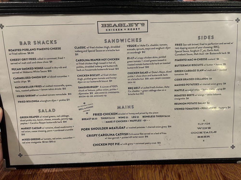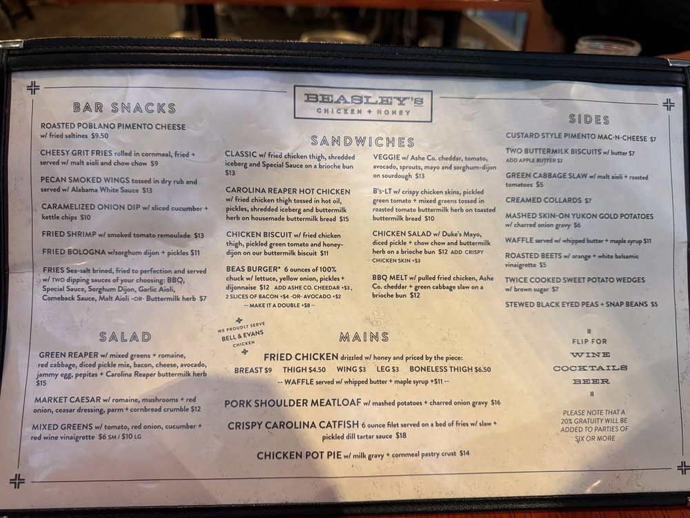 Beasley's Chicken & Honey Menu (Update 2025)